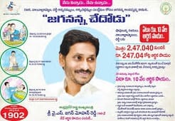 यह अनुमान है कि जगन्नाथ चेडोडु योजना के तहत अब तक 583 करोड़ रुपये जारी किए गए हैं, जिसमें 8 फरवरी 2022 को 285 करोड़ रुपये का वितरण किया जाना है। यह ज्ञात है कि आंध्र प्रदेश सरकार कल्याण योजना को जारी कैलेंडर के अनुसार लागू कर रही है। पिछले साल। सरकार वर्ष 2022-23 की योजनाओं के क्रियान्वयन का कलैण्डर शीघ्र ही अगले माह में जारी करेगी।