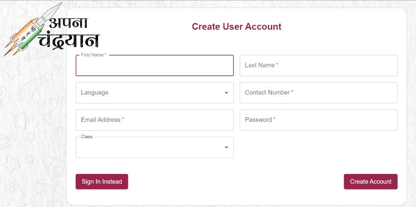 - लिंक पर क्लिक करते ही अपना चंद्रयान पोर्टल रजिस्ट्रेशन पेज खुल जाएगा।