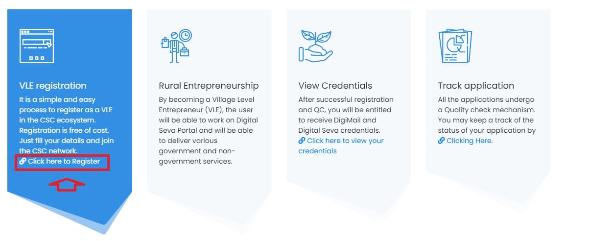 अपना सीएससी ऑनलाइन पंजीकरण और ग्राम स्तर उद्यमी (VLE) के लिए लॉगिन अब तालिका में दिखाया गया है। जो भी ग्रामीण और शहरी क्षेत्र के उद्यमी अपना खुद का सीएससी केंद्र खोलना चाहते हैं, उन्हें कॉमन सर्विस सेंटर के आधिकारिक वेब पोर्टल पर पंजीकरण कराना होगा। सीएससी आईडी प्राप्त करने के बाद, कोई भी व्यक्ति अपने आस-पास के क्षेत्र में अपना जन सेवा केंद्र खोल सकता है। सीएससी कई डिजिटल सेवा प्रदान करता है जैसे डिजी पे – एईपीएस, बीमा, बैंकिंग, पेंशन आधार सेवाएं, यूसीएल, डिजिटल उपयोगिता भुगतान आदि