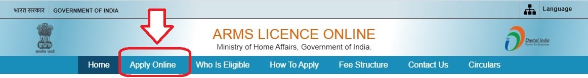 - सबसे पहले आपको आर्म्स लाइसेंस ऑनलाइन की आधिकारिक वेबसाइट https://ndal-alis.gov.in/armslicence/ पर जाना होगा।