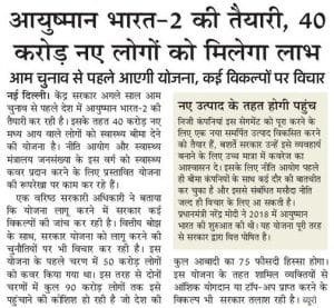 - प्रधानमंत्री जन आरोग्य योजना के अंतर्गत 10 करोड़ से अधिक परिवारों को लाभ मिलेगा|