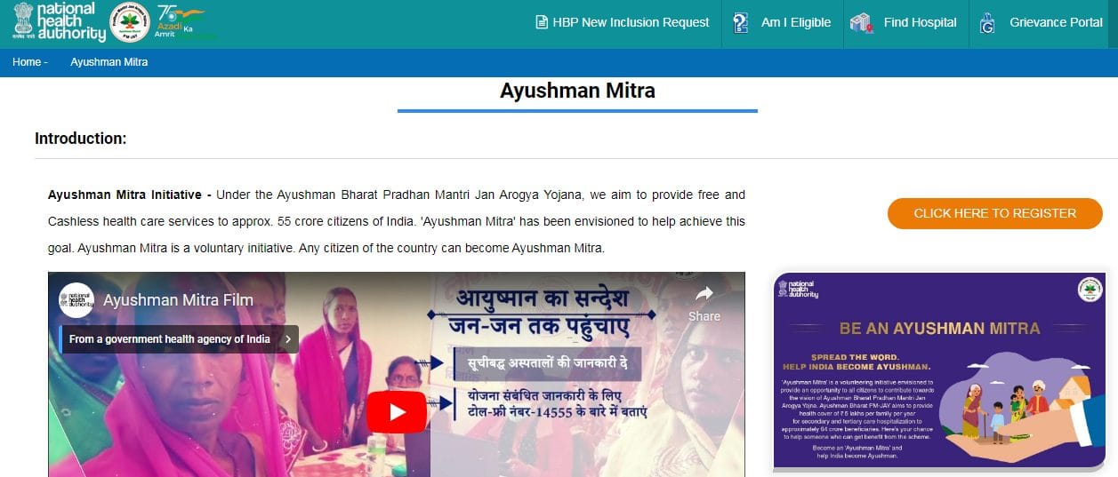 - सबसे पहले आपको आयुष्मान मित्र की आधिकारिक वेबसाइट https://pmjay.gov.in/ayushman-mitra पर जाना होगा।