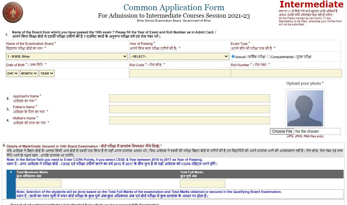 - बिहार में इंटरमीडिएट कॉलेजों और स्कूलों में 2025-27 में प्रवेश के लिए सामान्य आवेदन पत्र इस प्रकार दिखाई देगा: –