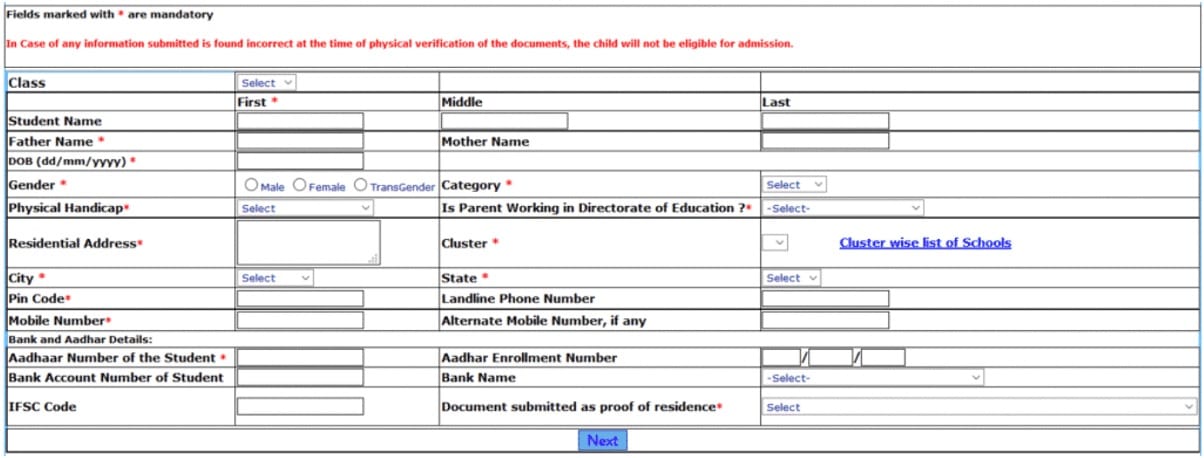 सभी छात्र जो गैर योजना प्रवेश के तहत दिल्ली के सरकारी स्कूलों में कक्षा 6वीं / 9वीं में प्रवेश लेना चाहते हैं, वे पंजीकरण कर सकते हैं और आवेदन पत्र भर सकते हैं।