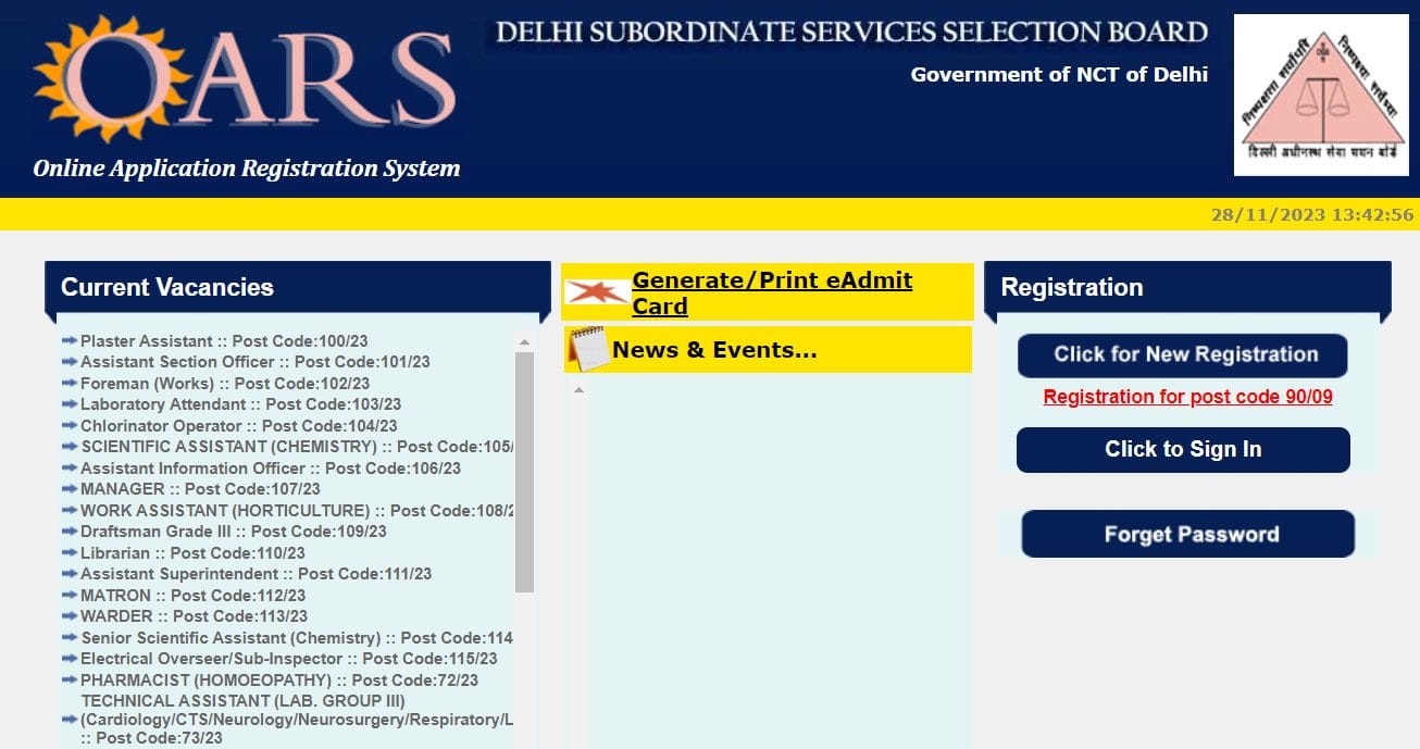 - लिंक पर क्लिक करने पर, डीएसएसएसबी ओएआरएस होमपेज खुल जाएगा जिसे लिंक का उपयोग करके भी खोला जा सकता है – https://dsssbonline.nic.in/