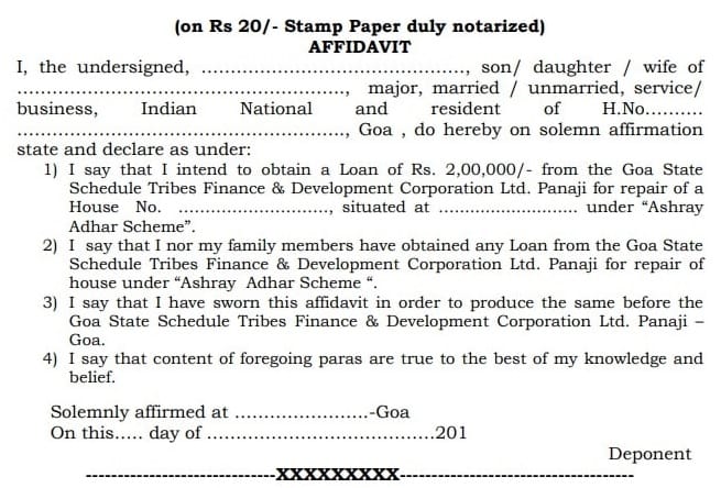 - हलफनामा 20 रुपये के स्टैंप पेपर पर प्रारूप में विधिवत नोटरी के रूप में दिया जाना है: –