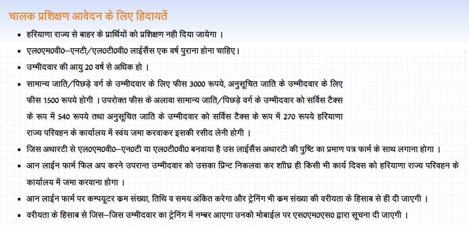 हरियाणा भारी वाहन चालक प्रशिक्षण पात्रता