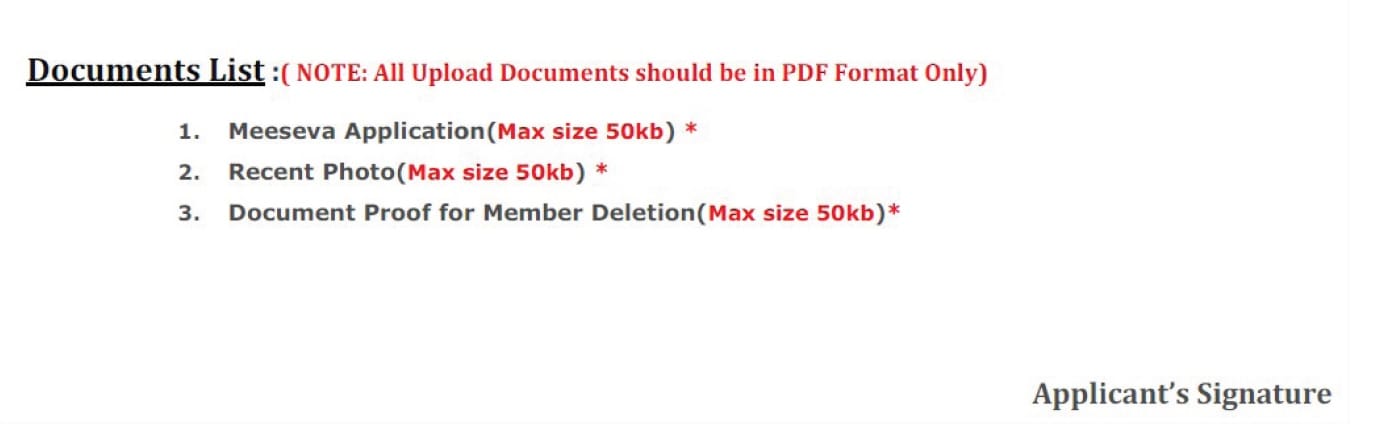 - मौजूदा राशन कार्ड से नाम विलोपन प्रमाण पत्र को विवाह के माध्यम से दर्ज सदस्य के प्रमाण पत्र के रूप में प्रस्तुत करना होगा।