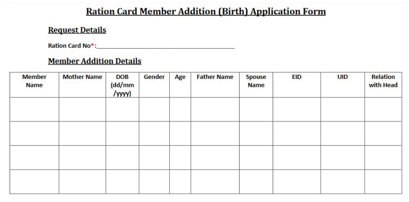 राशन कार्ड पर बेटे / बेटी या पत्नी / पति के नाम जैसे नए सदस्य को जोड़ने के लिए आपको निम्नलिखित चरणों का पालन करना होगा।