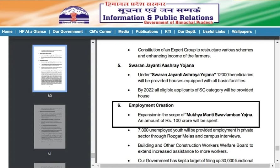 HP Mukhyamantri Swavalamban Yojana ऑनलाइन पंजीकरण