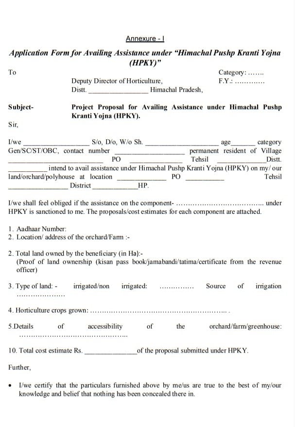हिमाचल पुष्प क्रांति योजना एप्लीकेशन फॉर्म PDF डाउनलोड