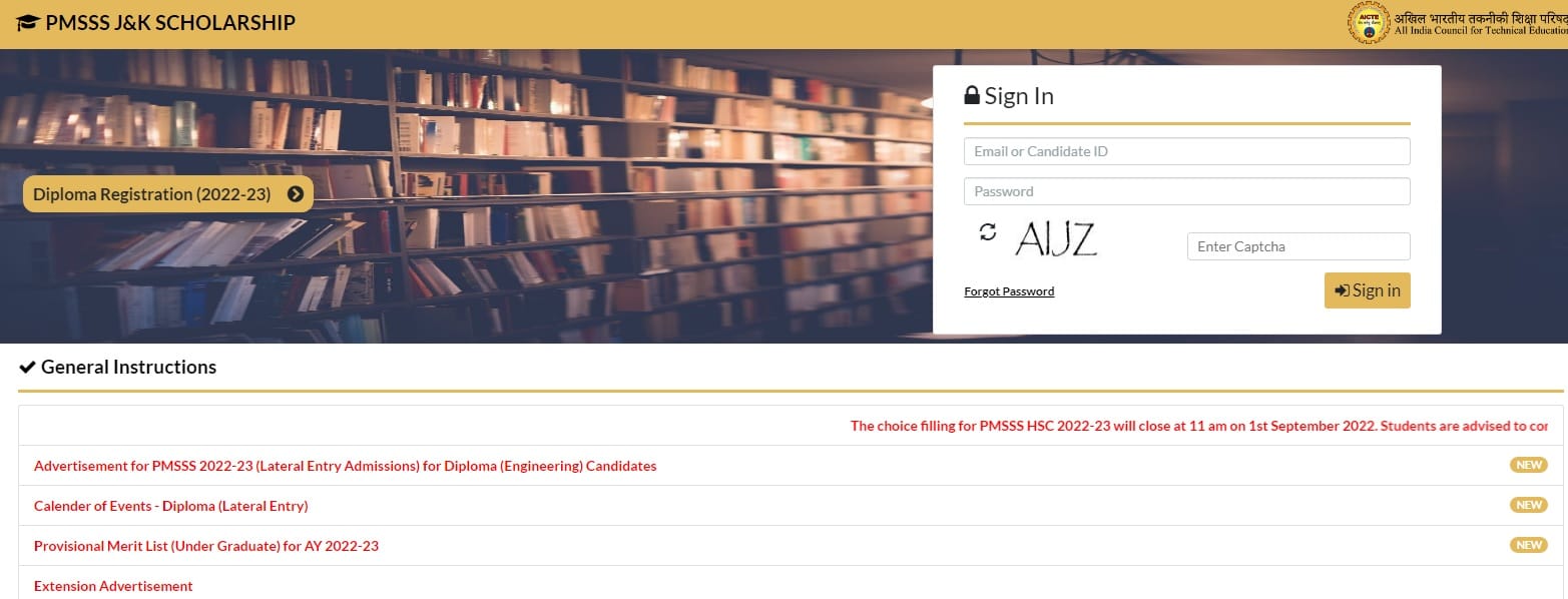 اے آئی سی ٹی ای جے کے اسکالرشپ کے لیے درخواست دینے اور پی ایم ایس ایس ایس رجسٹریشن کرنے کا مکمل طریقہ ذیل ہے:-