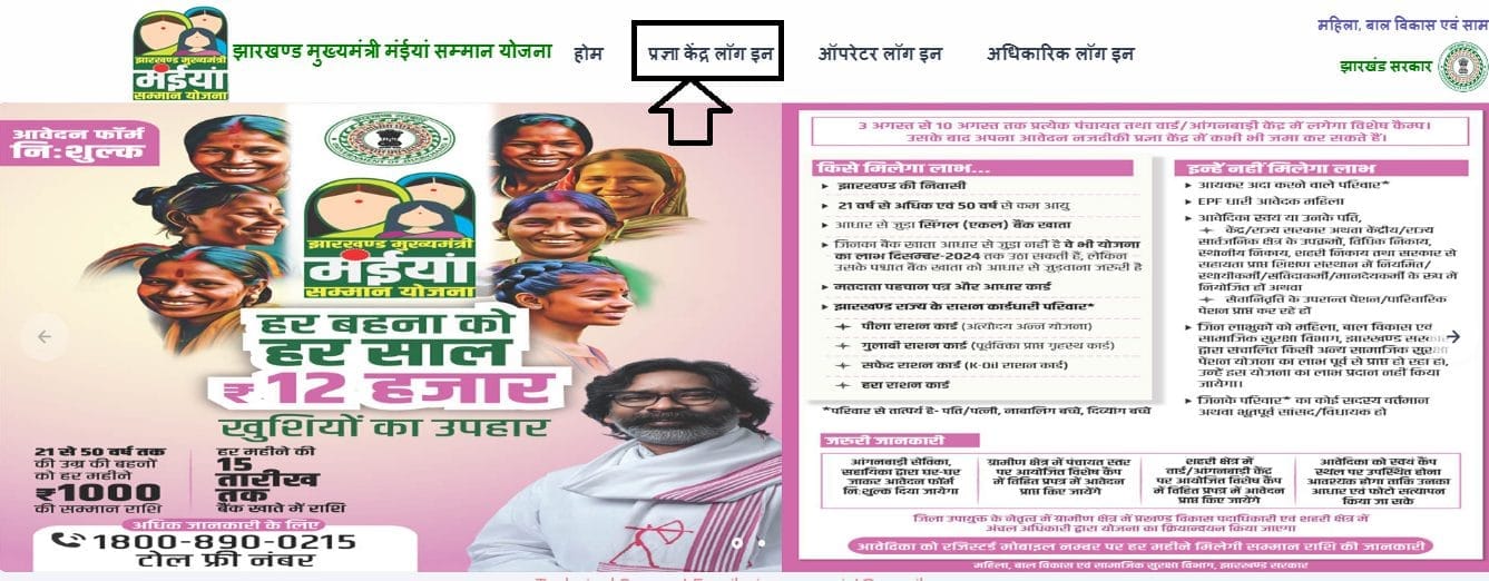 झारखंड राज्य की जो भी महिलाएं मंईयां सम्मान योजना के अंतर्गत आवेदन करना चाहती है तो वह इस योजना का फॉर्म अपने नजदीकी आंगनबाड़ी केंद्र से निशुल्क प्राप्त कर भरकर पंचायत या ब्लॉक में आयोजित केंद्र में जाकर जमा कर सकती है। इसके अलावा झारखंड सरकार द्वारा ऑनलाइन आवेदन करने हेतु आधिकारिक वेबसाइट भी जारी की गई है। जिस महिला आधिकारिक वेबसाइट के माध्यम से अपना फॉर्म ऑनलाइन भर सकती है जिसके लिए उनके पास CSC ID होना आवश्यक है अगर आपके पास सीएससी आईडी है तो आप नीचे दी गई प्रक्रिया को अपनाकर मंईयां सम्मान योजना के लिए ऑनलाइन पंजीकरण कर सकती है।