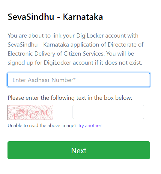 - ಇಲ್ಲಿ ನೀವು ಆಧಾರ್ ಸಂಖ್ಯೆ, ಕ್ಯಾಪ್ಚಾವನ್ನು ನಮೂದಿಸಬಹುದು ಮತ್ತು “Next” ಬಟನ್ ಕ್ಲಿಕ್ ಮಾಡಬಹುದು. ನಂತರ ನೀವು ನಿಮ್ಮ ಆಧಾರ್ ಲಿಂಕ್ ಮಾಡಿದ ಮೊಬೈಲ್ ಸಂಖ್ಯೆಗೆ ಸ್ವೀಕರಿಸಿದ OTP ಅನ್ನು ನಮೂದಿಸಬೇಕಾಗುತ್ತದೆ.