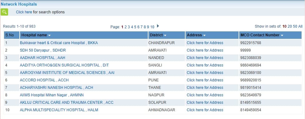 राजीव गांधी जीवनदायी आरोग्य योजना अस्पताल सूची पृष्ठ नीचे दिखाए अनुसार दिखाई देगा: –