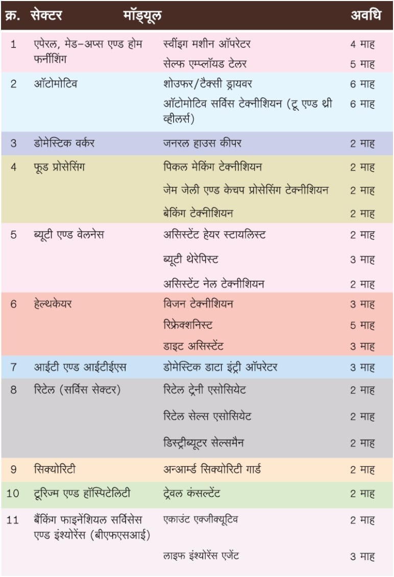 मुख्यमंत्री कौशल्या योजना के तहत पाठ्यक्रम