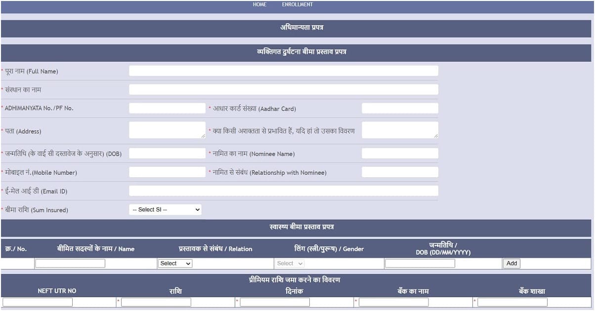 - गैरअधिमान्यता पर क्लिक करने से मध्य प्रदेश पत्रकार स्वास्थ्य एवं दुर्घटना समूह बीमा योजना आवेदन पत्र खुलेगा :-