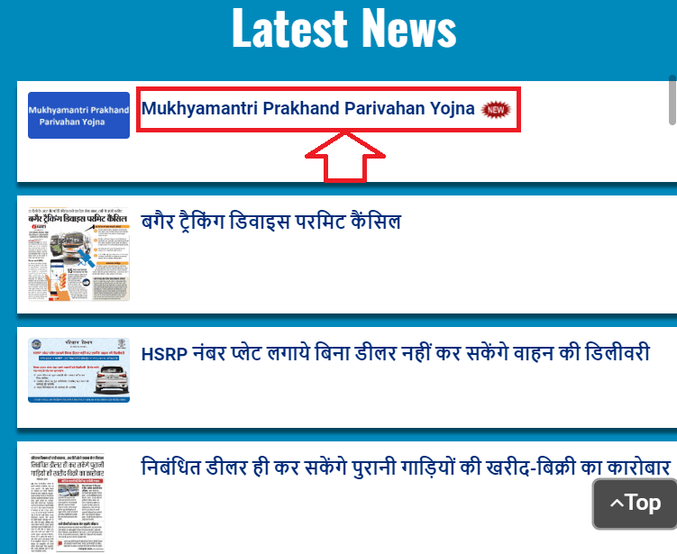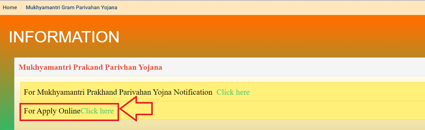 - होम पेज पर आपको नीचे की ओर Mukhyamantri Prakhand Parivahan Yojana के ऑप्शन पर क्लिक करना होगा।