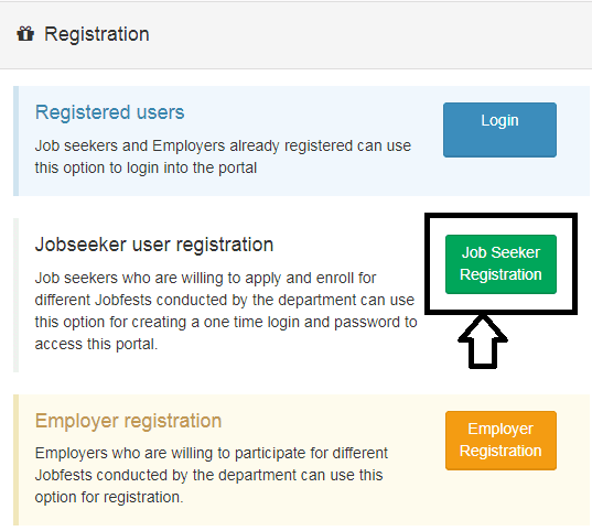 - Next, select the “Job Seeker Registration” link that appears on the main screen.