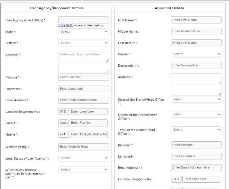 - पंजीकरण के लिए नीचे दोनों फॉर्म भरने होंगे और यदि उपयोगकर्ता एजेंसी और आवेदक का विवरण समान है तो समान विवरण भरें।