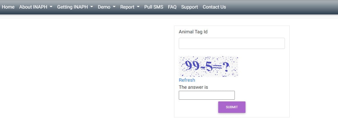 - पशु टैग आईडी दर्ज करें, कैप्चा दर्ज करें और पशु आधार कार्ड की स्थिति ऑनलाइन जांचने के लिए “Submit” बटन पर क्लिक करें।