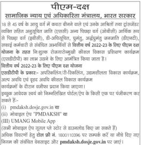 अधिक जानकारी के लिए आधिकारिक वेबसाइट https://pmdaksh.dosje.gov.in/ पर जाएं।