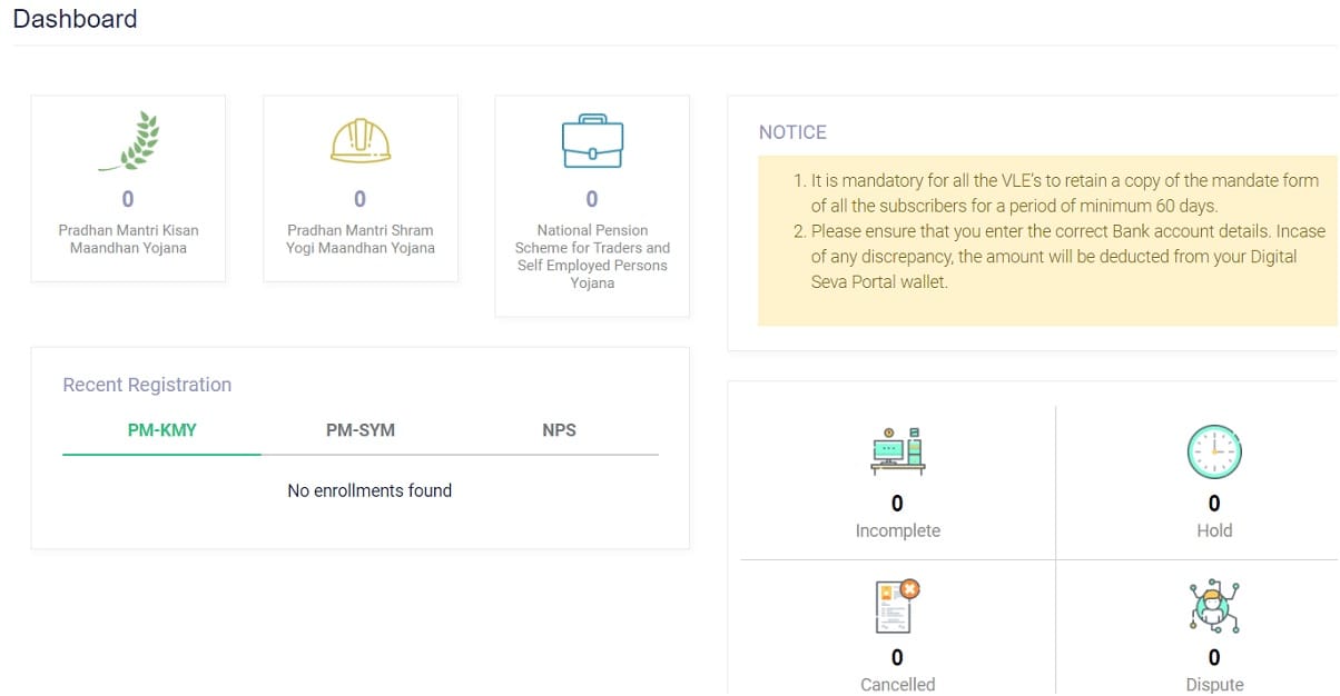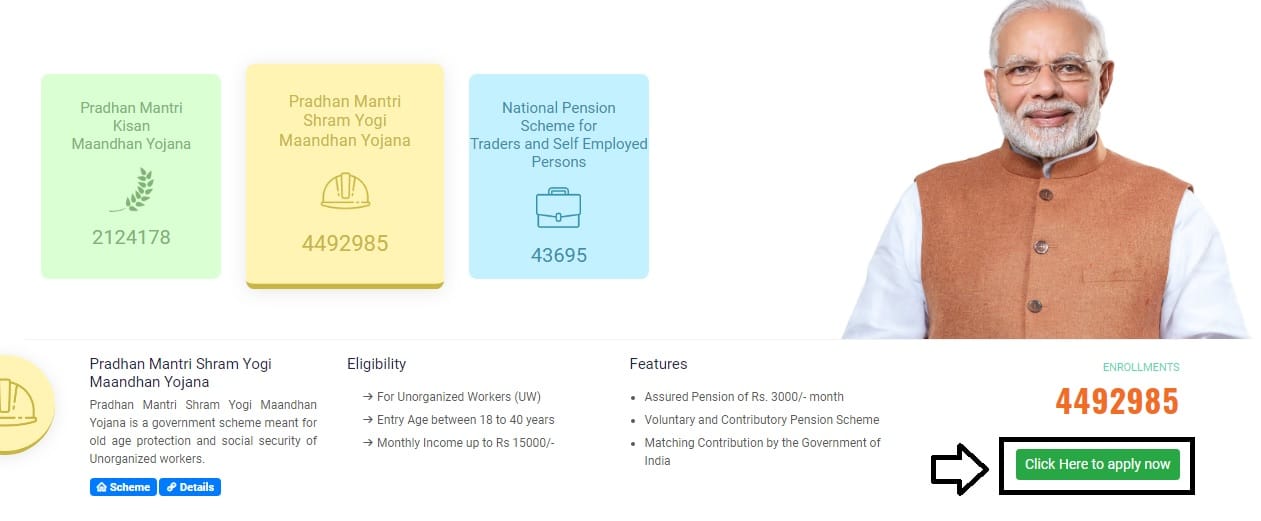 - बाद में, एक डैशबोर्ड खुलेगा जिसमें योजनाओं का नाम होगा- प्रधानमंत्री किसान योजना, प्रधानमंत्री श्रम योगी योजना और व्यापारियों के लिए राष्ट्रीय पेंशन योजना और स्व-नियोजित व्यक्ति योजना।