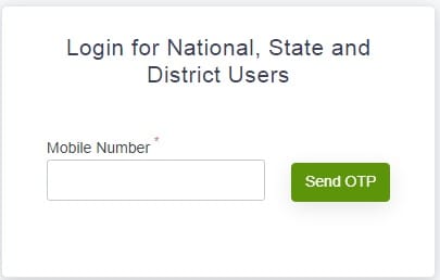 - यहां आपको मोबाइल नंबर दर्ज करना होगा और राष्ट्रीय, राज्य या जिला उपयोगकर्ता के रूप में लॉगिन करने के लिए “Send OTP” बटन पर क्लिक करना होगा।