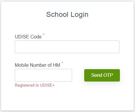 - यूडीआईएसई कोड, एचएम का मोबाइल नंबर दर्ज करें और पीएम श्री स्कूल लॉगिन करने के लिए “Send OTP” बटन पर क्लिक करें।