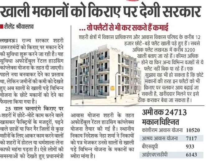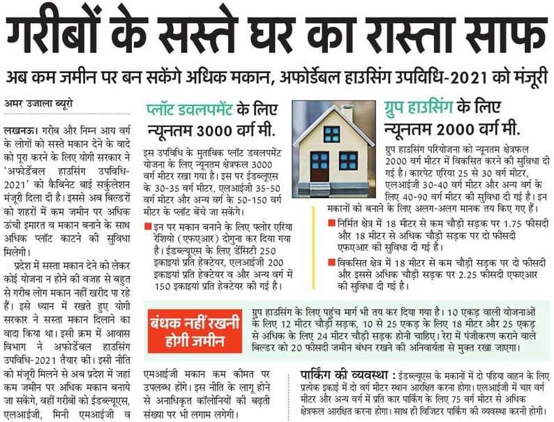 अच्छी खबर !! उत्तर प्रदेश सरकार अफोर्डेबल हाउसिंग योजना के तहत विभिन्न योजनाओं के तहत खाली पड़े छोटे मकानों को किराए पर देगी। गरीबों के लिए सस्ते घर का रास्ता साफ़ हो गया है। गरीब और कम आय वर्ग के लोगों को सस्ते में मकान दिलाने के लिए अफोर्डेबल हाउसिंग उपविधि को मंजूरी दे दी गयी है। अधिक जानकारी नीचे दी हुयी है….