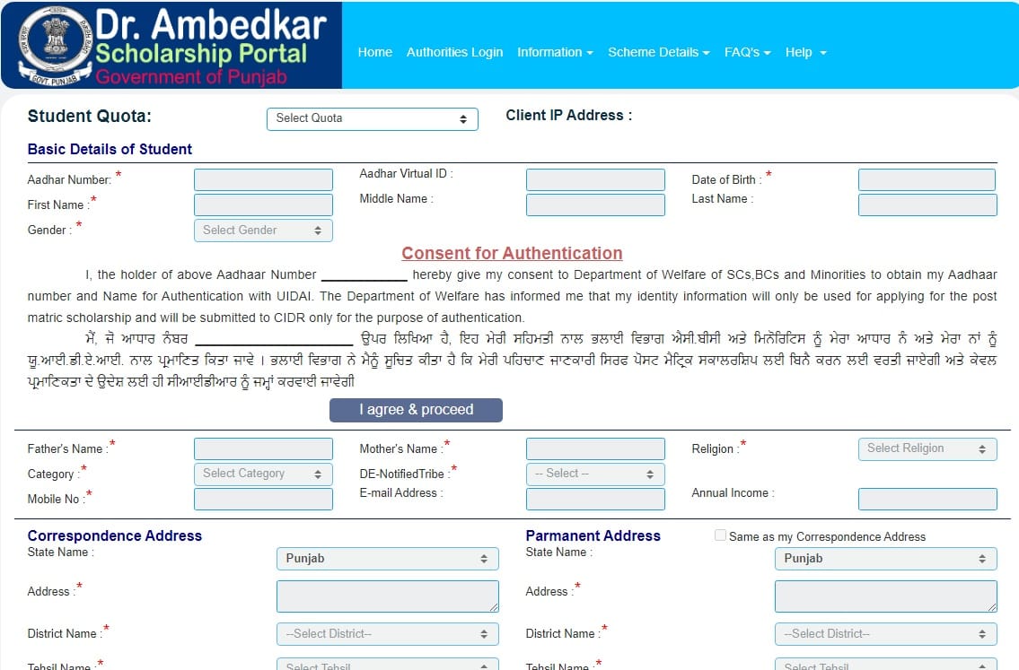 डॉ अम्बेडकर छात्रवृत्ति पोर्टल पंजाब में छात्र पंजीकरण