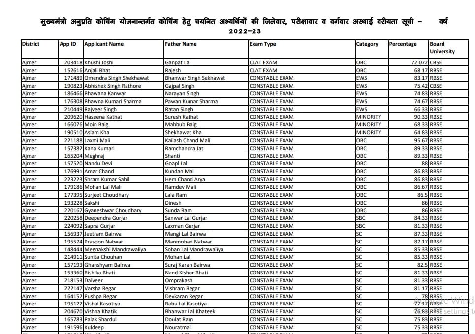 मुख्यमंत्री अनुप्रति कोचिंग योजना के लिए चयनित उम्मीदवारों के नाम वाली पूरी पीडीएफ फाइल दिखाई देगी: –