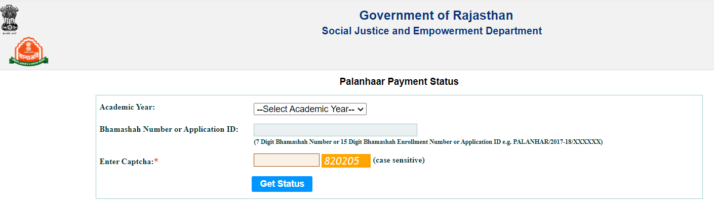 - आपको इस सेक्शन में से Palanhar Payment Status के ऑप्शन पर क्लिक करना होगा। ऑप्शन पर क्लिक करने के बाद आपके सामने अगला पेज खुल जायेगा।