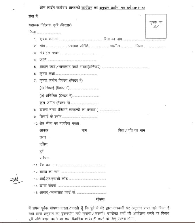 राजस्थान तारबंदी योजना फॉर्म पीडीएफ डाउनलोड