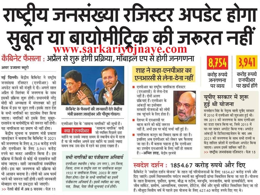 केंद्र सरकार ने 24 दिसंबर 2019 को राष्ट्रीय जनसंख्या रजिस्टर को अपडेट करने के लिए एक योजना की घोषणा की है और अब भारत के गृह मंत्रालय के रजिस्ट्रार जनरल और जनगणना आयुक्त कार्यालय ने एनुमरेटर्स के लिए एनआरपी पंजीकरण अनुसूची और अनुदेश मैनुअल का खुलासा किया है। हमारे देश के Enumerators और Supervisors राष्ट्रीय जनसंख्या रजिस्टर के लिए जनगणना के आंकड़े एकत्र करने जा रहे है।