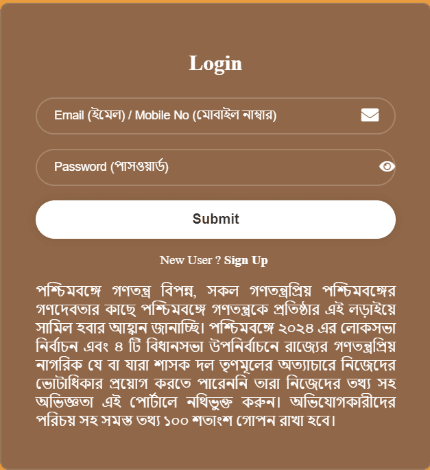 सेव डेमोक्रेसी WB पोर्टल – लॉगिन