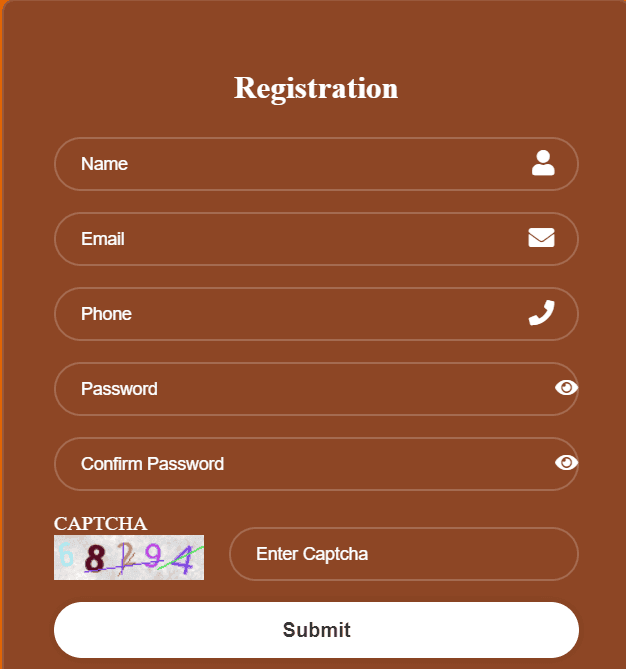 - नाम, ईमेल, फोन, पासवर्ड, कैप्चा सहित सभी विवरण भरें और फिर अपना पंजीकरण पूरा करने के लिए Submit बटन पर क्लिक करें।