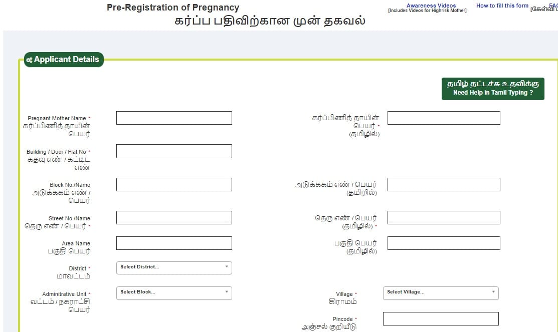 தமிழ்நாடு அரசு அனைத்து கர்ப்பங்களையும் பதிவு செய்ய கட்டாயப்படுத்தியுள்ளது, இது கிராம சுகாதார செவிலியர் அல்லது நகர்ப்புற சுகாதார செவிலியரால் பதிவு செய்யப்படும். கர்ப்பிணித் தாய்மார்களுக்கு வசதியாக இருக்க, கர்ப்பத்தின் முன் பதிவு என்ற கருத்தை அரசாங்கம் அறிமுகப்படுத்தியுள்ளது. இது பல்வேறு வழிகளில் தனது கர்ப்பத்தை நெருங்க அனுமதிக்கிறது. கர்ப்பத்தின் முன் பதிவு 4 வழிகளில் செய்யப்படலாம்:-
