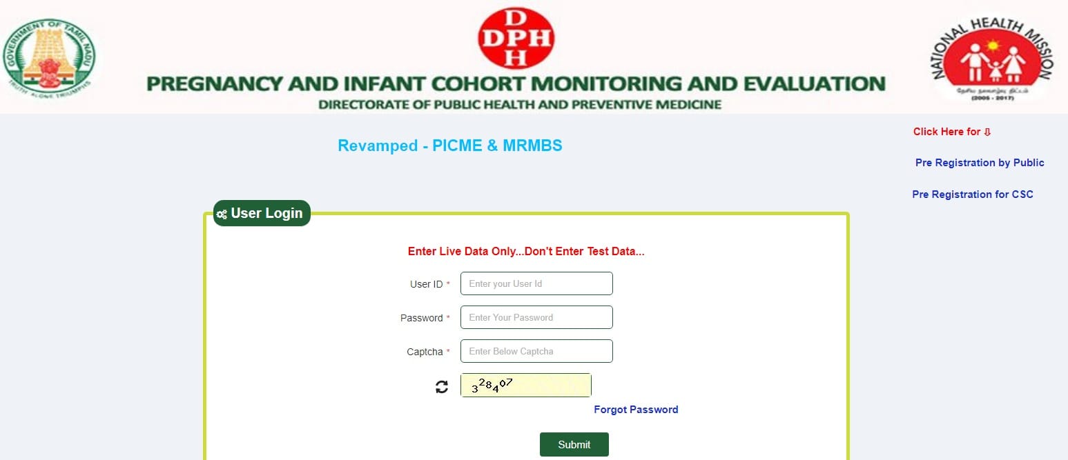 PICME பொது-தமிழ்நாட்டில் கர்ப்பத்தின் முன் பதிவு