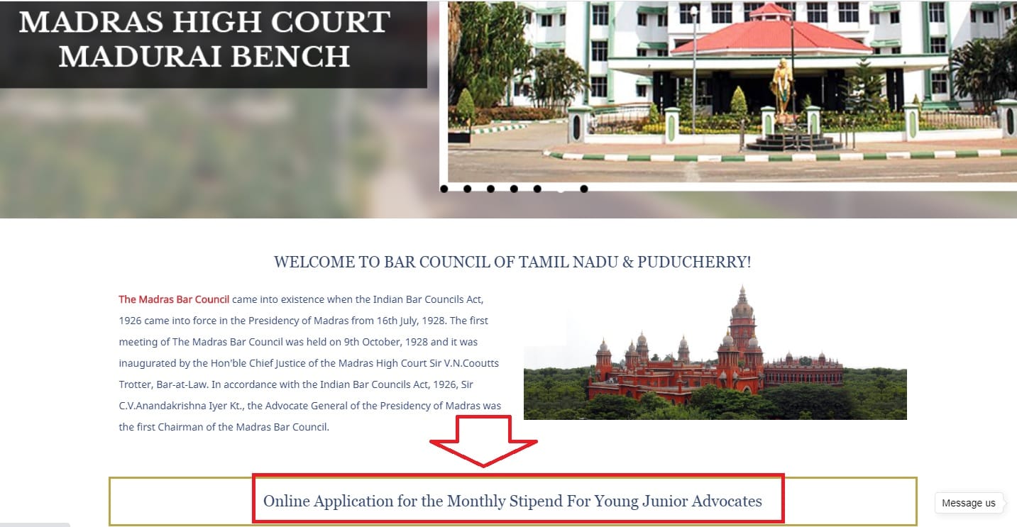 - सबसे पहले आपको तमिलनाडु सरकार की BAR COUNCIL OF TAMIL NADU & पुडुचेर्री की आधिकारिक वेबसाइट http://barcounciloftamilnadupuducherry.org/a/ पर जाना होगा।