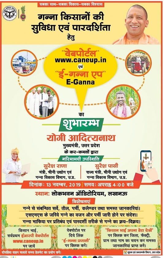 सरकार ने प्रदेश की सहकारी चीनी मिलों के गन्ना किसानों के भुगतान के लिए 500 करोड़ रुपये जारी कर दिए हैं। गन्ना किसानों को सौ दिन में होगा 8000 करोड़ का भुगतान, साथ ही प्रदेश के लाख गन्ना किसानों को यूनिक ग्रोअर कोड (यूजीसी) जारी होगा। गन्ना किसानों को इसी पेराई सत्र से बढ़ा हुआ मूल्य मिलेगा। उत्तर प्रदेश सरकार ने गन्ना किसानों की सुविधा और पारदर्शिता के लिए नया वेब पोर्टल और एप शुरू किया है। किसान भाई वेबसाइट पर अपने आँकड़े देख सकते हैं और e ganna ऐप डाउनलोड कर सकते हैं। लिंक नीचे दी हुयी है…..