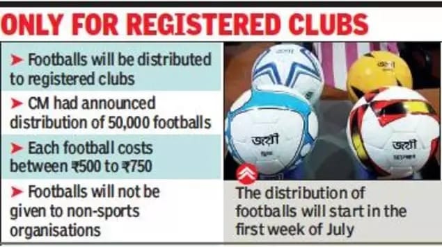 পশ্চিমবঙ্গ রাজ্য ক্রীড়া ও যুব বিষয়ক বিভাগ নিবন্ধিত ক্রীড়া ক্লাবের হাতে ১ লাখ ফুটবল তুলে দিতে চলেছে। যেসব ক্রীড়া ক্লাবগুলি আন্তর্জাতিক ফুটবল একাডেমিতে (IFA) নিবন্ধিত হয়েছে তারা প্রত্যেকে 10 টি ফুটবল পাবে।