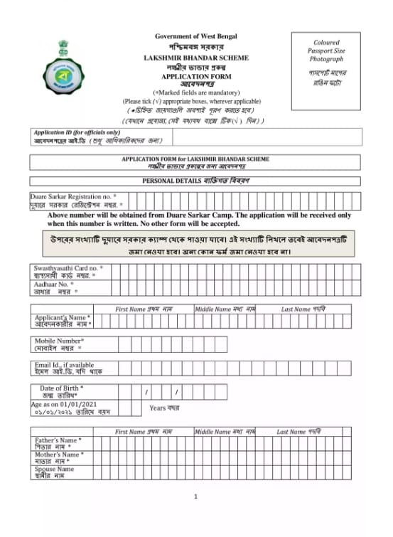 लक्ष्मीर भंडार योजना आवेदन पत्र पीडीएफ दिखाई देगा: –