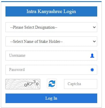 कन्याश्री प्रकल्प योजना ऑनलाइन पंजीकरण फॉर्म / इंट्रा लॉगिन