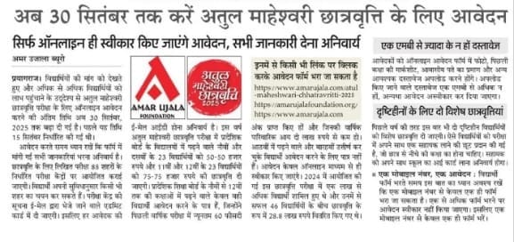 atul maheshwari scholarship exam date 2025 2026 online application atul maheshwari scholarship model paper 2025 apply online अतुल माहेश्वरी छात्रवृत्ति 2025 eligibility criteria exam scheme amar ujala foundation exam fees syllabus last date for online application अतुल माहेश्वरी स्कॉलरशिप एप्लीकेशन फॉर्म ऑनलाइन एप्लीकेशन पात्रता अमर उजाला फाउंडेशन स्कॉलरशिप