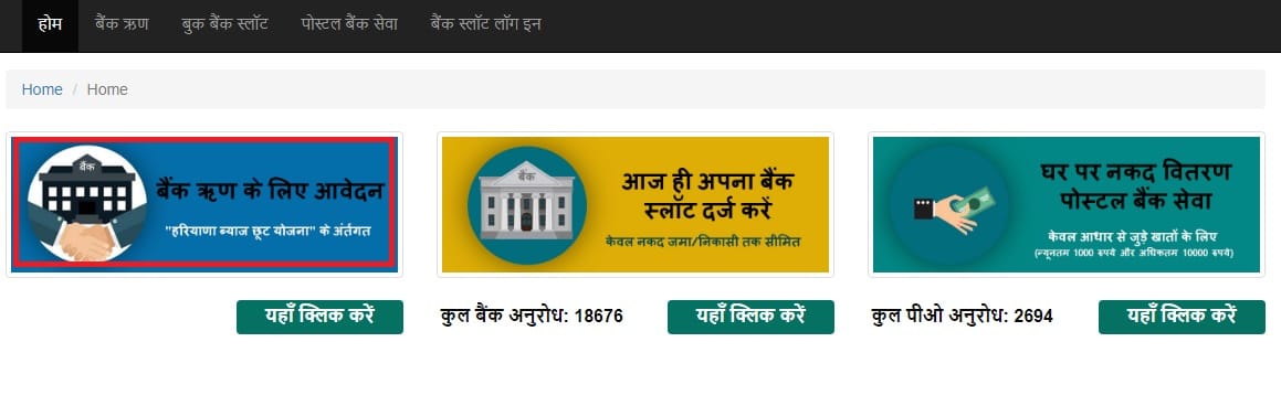 - होमपेज पर, “बैंक ऋण के लिए आवेदन” टैब पर क्लिक करें: –