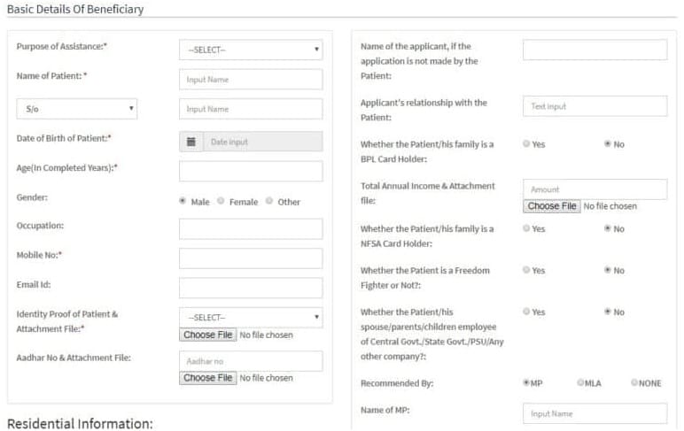 - ଏଠାରେ ସମ୍ପୂର୍ଣ୍ଣ ବିବରଣୀ ପ୍ରବେଶ କରନ୍ତୁ ଏବଂ ଇନକମ୍ ସାର୍ଟିଫିକେଟ୍, ଆଧାର କାର୍ଡ ବିବରଣୀ, ରୋଗୀର ପରିଚୟ ପ୍ରମାଣ ଏବଂ ସୁପାରିଶର କପି ଅପଲୋଡ୍ କରନ୍ତୁ | ତାପରେ, ପଞ୍ଜୀକରଣ ପ୍ରକ୍ରିୟା ସମାପ୍ତ କରିବାକୁ “Submit” ବଟନ୍ ଉପରେ କ୍ଲିକ୍ କର |