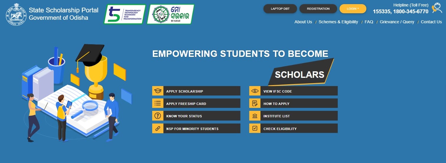 - ରାଜ୍ୟ ଛାତ୍ରବୃତ୍ତି ପୋର୍ଟାଲ, ଓଡ଼ିଶା ସରକାରଙ୍କ ଅଫିସିଆଲ୍ ୱେବସାଇଟ୍ କୁ ଯାଆନ୍ତୁ |