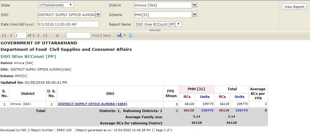 - अब उत्तराखंड राशन कार्ड सूची खोलने के लिए DSO अनुभाग पर क्लिक करें।