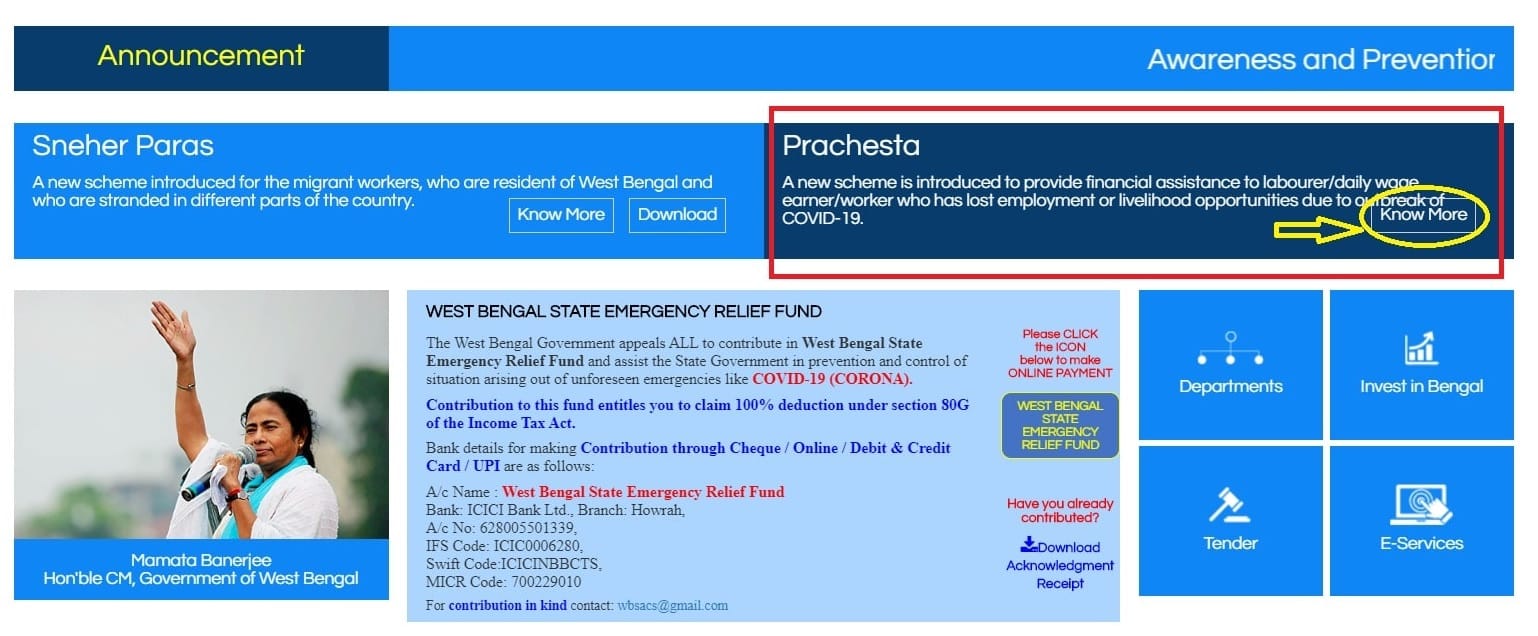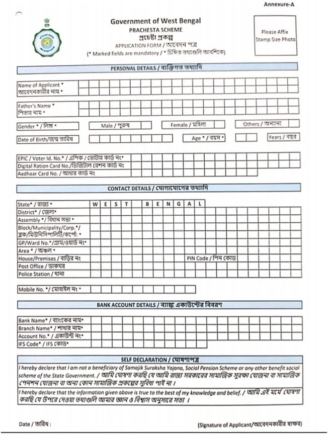 पश्चिम बंगाल के प्रचेस्टा योजना के तहत सभी इच्छित लाभार्थियों को पंजीकरण / आवेदन पत्र भरकर और व्यक्तिगत रूप से जमा करके आवेदन करना होगा। कोई भी थोक आवेदन स्वीकार नहीं किया जाएगा।